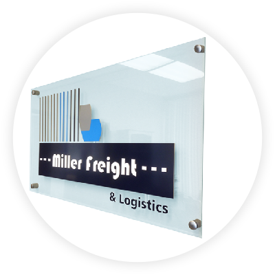 Símbolos y letras: Adhesivo de corte o impreso con logotipo corporativos.